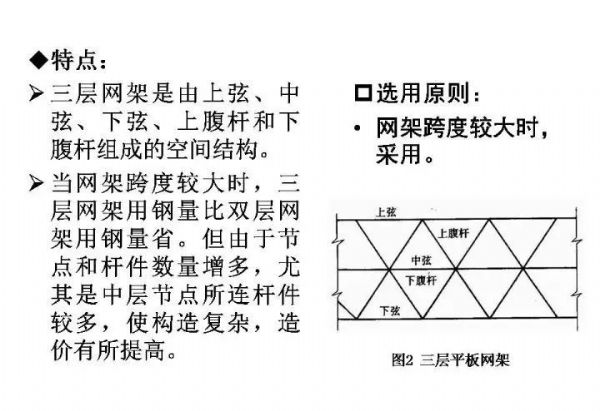 本文主要講述了網(wǎng)架結(jié)構(gòu)的形式、設(shè)計(jì)選型、支承體系以及網(wǎng)架的找坡方法,并進(jìn)行了常用網(wǎng)架設(shè)計(jì)軟件的比較,對空間鋼結(jié)構(gòu)尤其是網(wǎng)架網(wǎng)殼結(jié)構(gòu)感興趣的朋友不妨一讀。